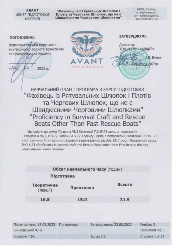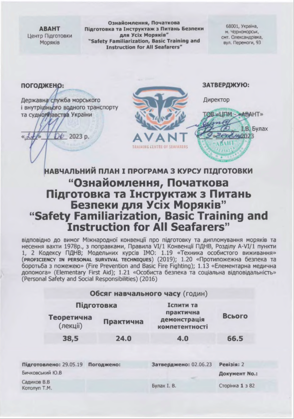 Ознайомлення з безпекою, базова підготовка та інструктаж для всіх моряків