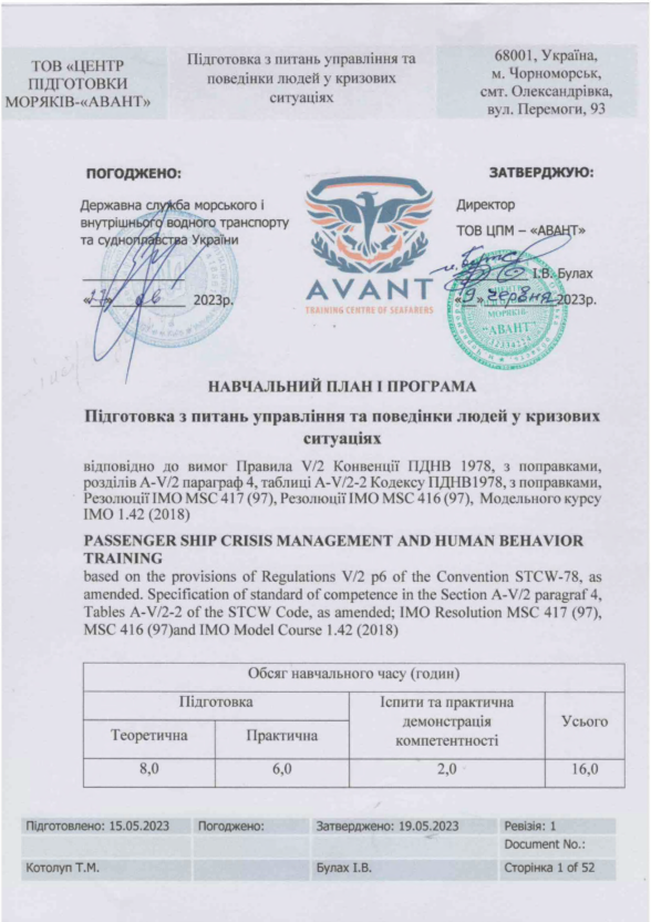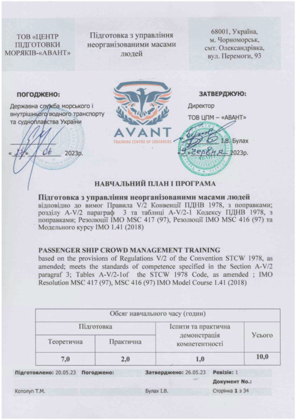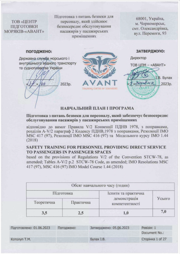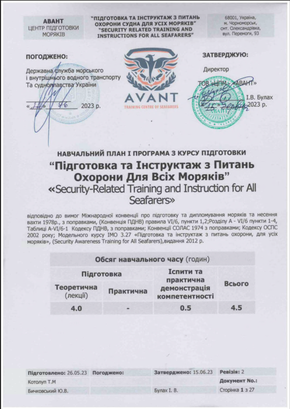 Підготовка та інструктаж з питань безпеки для всіх моряків