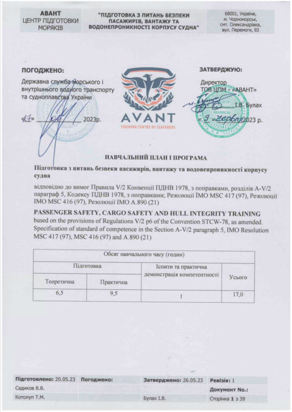 Підготовка з безпеки пасажирів, вантажів та водонепроникності корпусу