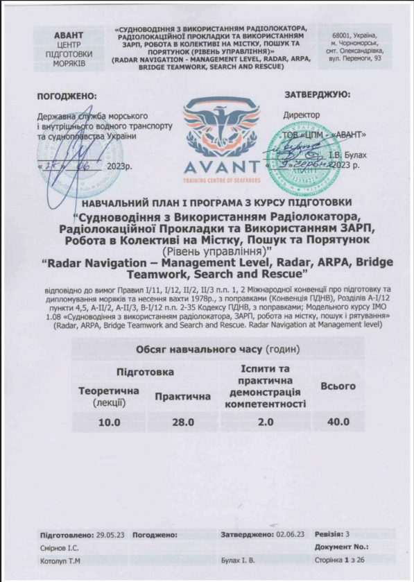 Радіолокаційна навігація - рівень управління, радар, ARPA, робота в команді на містку, пошук та рятування