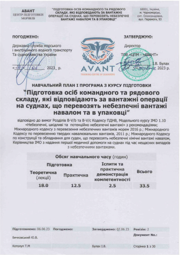 Підготовка членів екіпажу, відповідальних за вантажні операції на суднах, що безпечно перевозять насипні та упаковані вантажі