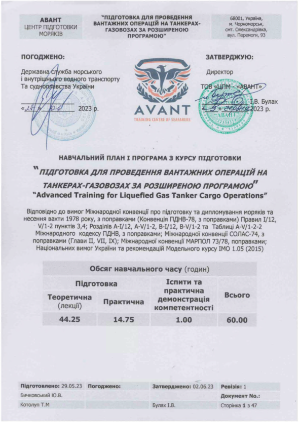 Підвищена підготовка з перевезення вантажів на танкерах зі зрідженим газом
