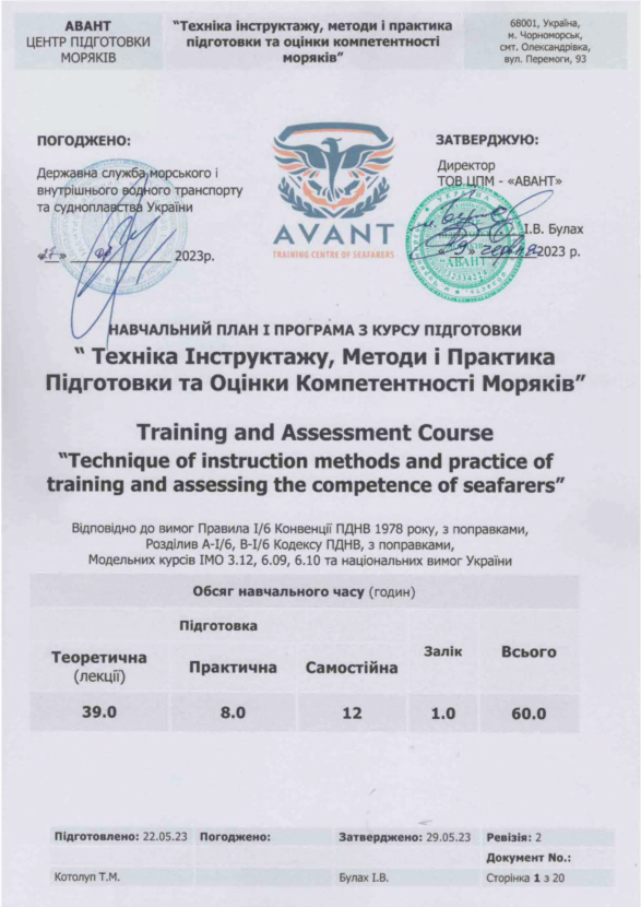 Методика, методи навчання та практика навчання та оцінки компетентності моряків