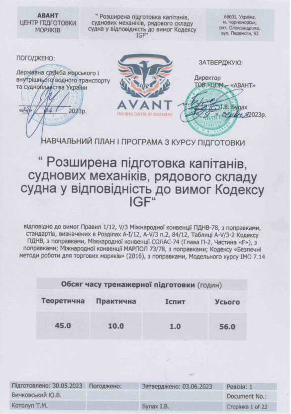 Підвищена підготовка капітанів, суднових механіків, рядового складу судна відповідно до вимог Кодексу IGF
